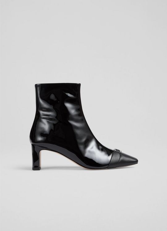 Hylda Black Patent Ankle Boots