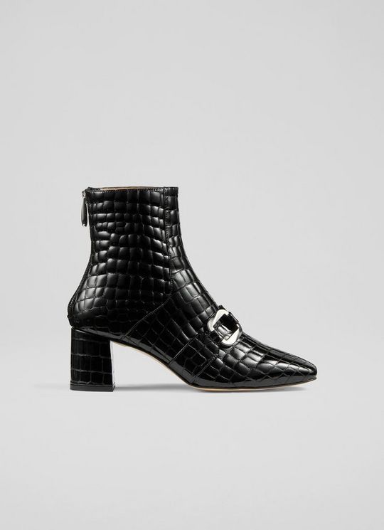 Nadima Black Patent Croc Leather Ankle Boots