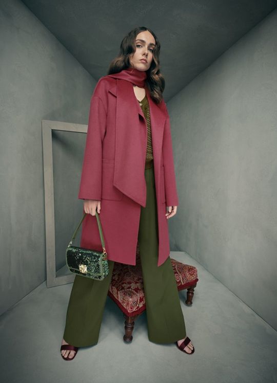 Natalia Green Wool Fitted Double Breasted Coat
