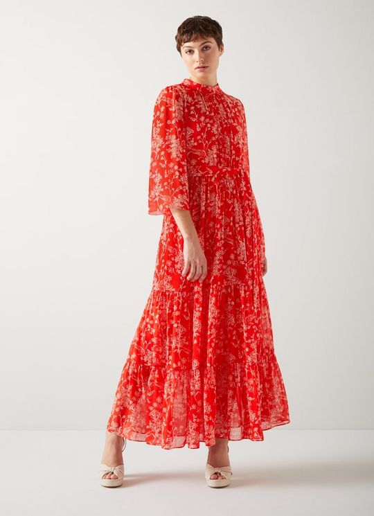 Olivia Red And Cream Silk Georgette Maxi Dress