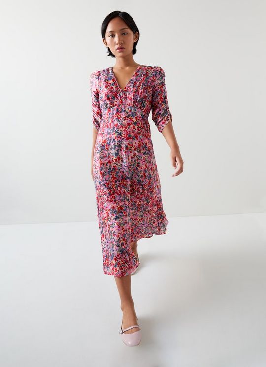 Erin Petite Pink Multi Watercolour Floral Jacquard Dress