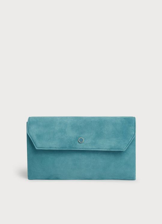 Aria Mint Leaf Suede Curve Flap Wide Clutch Bag