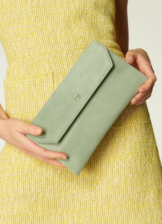 Dora Soft Green Suede Clutch