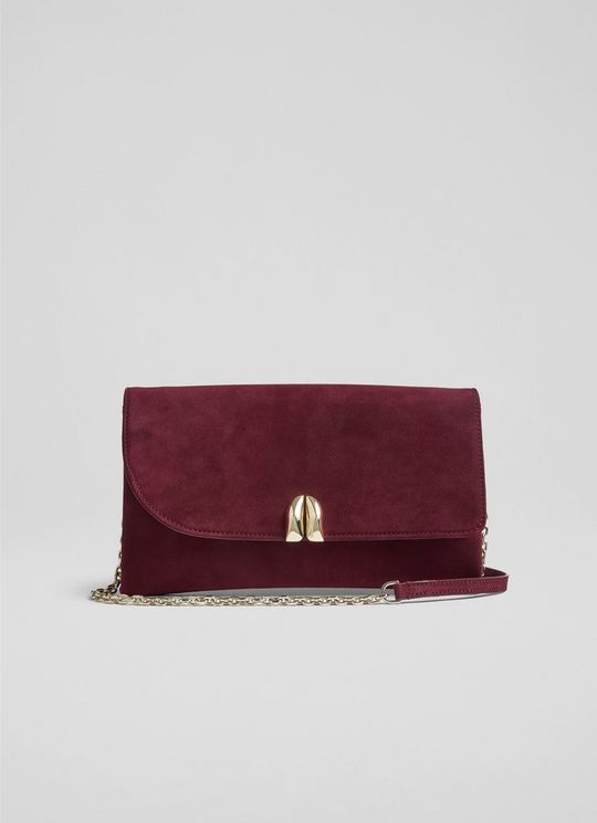 Aria Burgundy Suede Clutch Bag