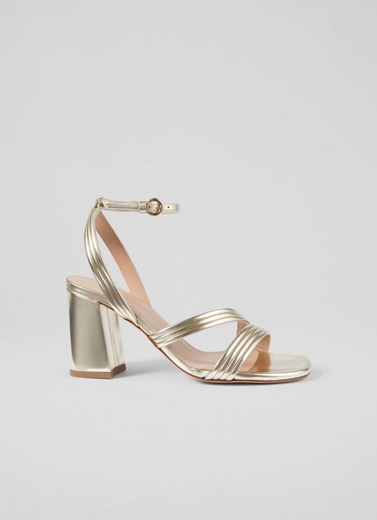Edita Gold Strap Block Heels