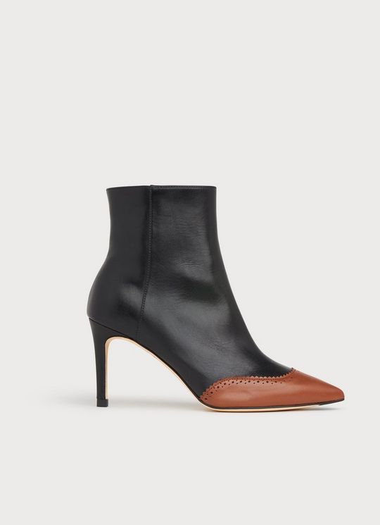 Angelica Black & Tan Leather Brogue Detail Ankle Boots