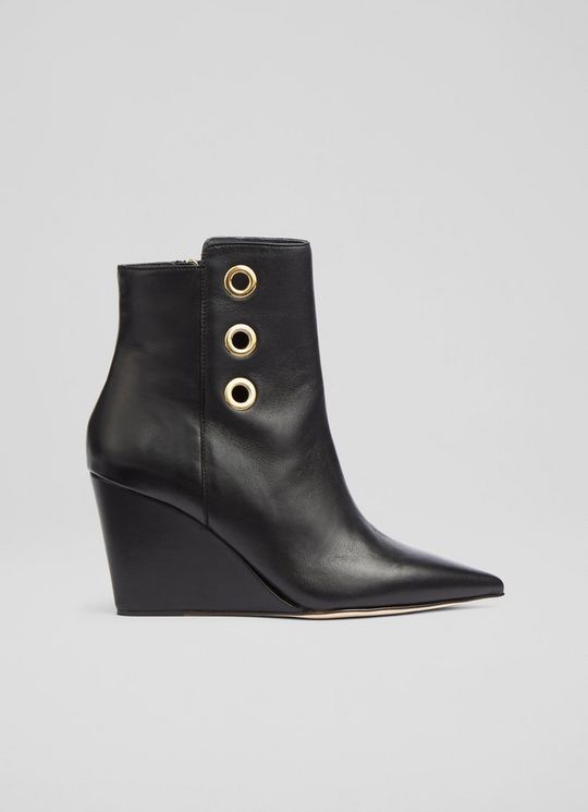 Brie Black Leather Wedge Ankle Boots